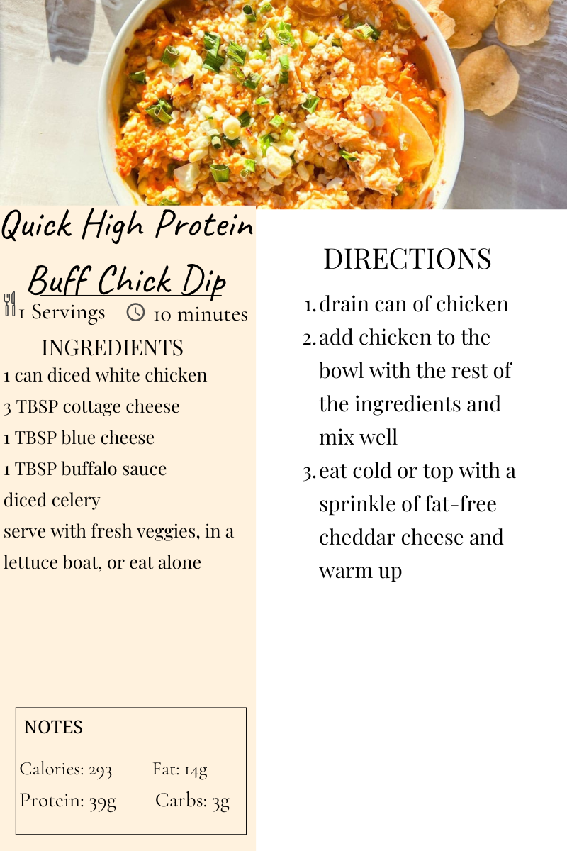 QUICK HIGH PROTEIN BUFFALO CHICKEN DIP